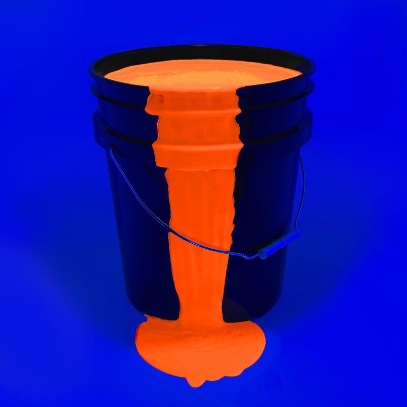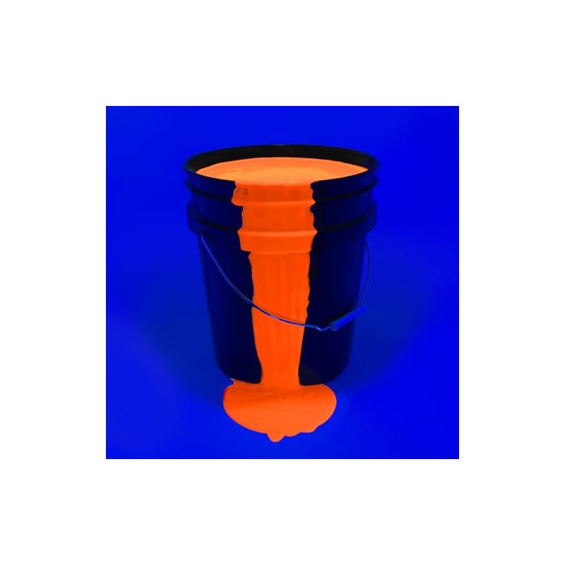 - 5 GALLON CONTAINER: Large 5-gallon container of vibrant neon orange UV-reactive paint perfect for events and large-scale applications. Simply the best size for glow events that require a high amount of paint. The colors are semi-translucent during the daylight and will glow bright in UV under a blacklight in the dark or at night.