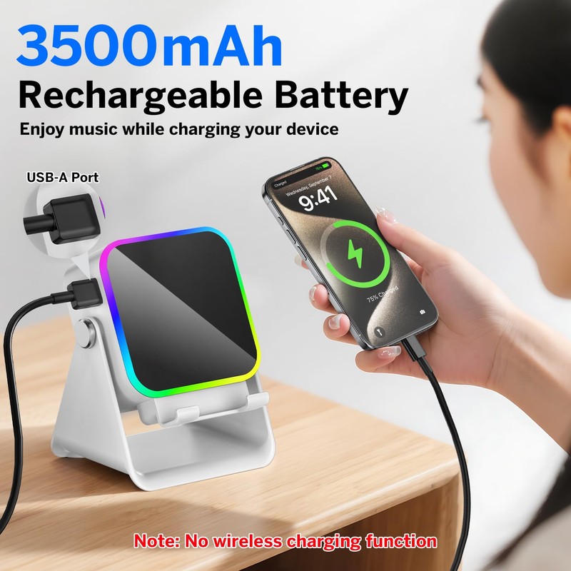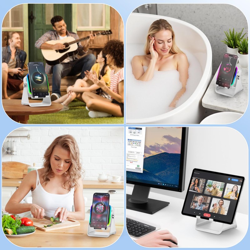 • 3500 mAh Rechargeable & Compact and Portable:The phone speaker has a built-in 3500 mAh Rechargeable, which can charge your phone while listening to music or watching movies. bluetooth speaker with stand is small and portable, very suitable for outdoor, party, travel, etc