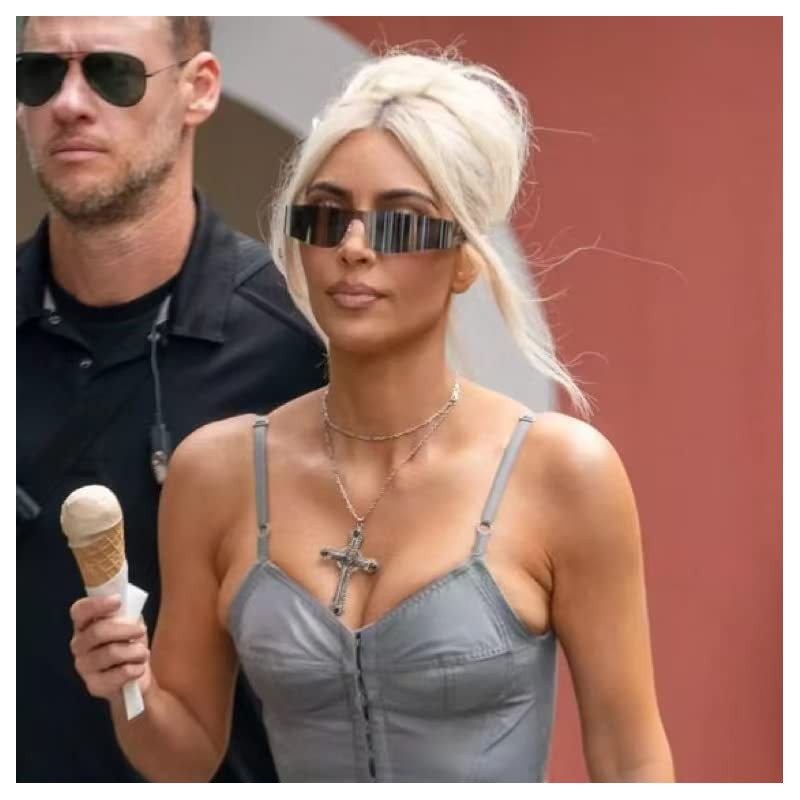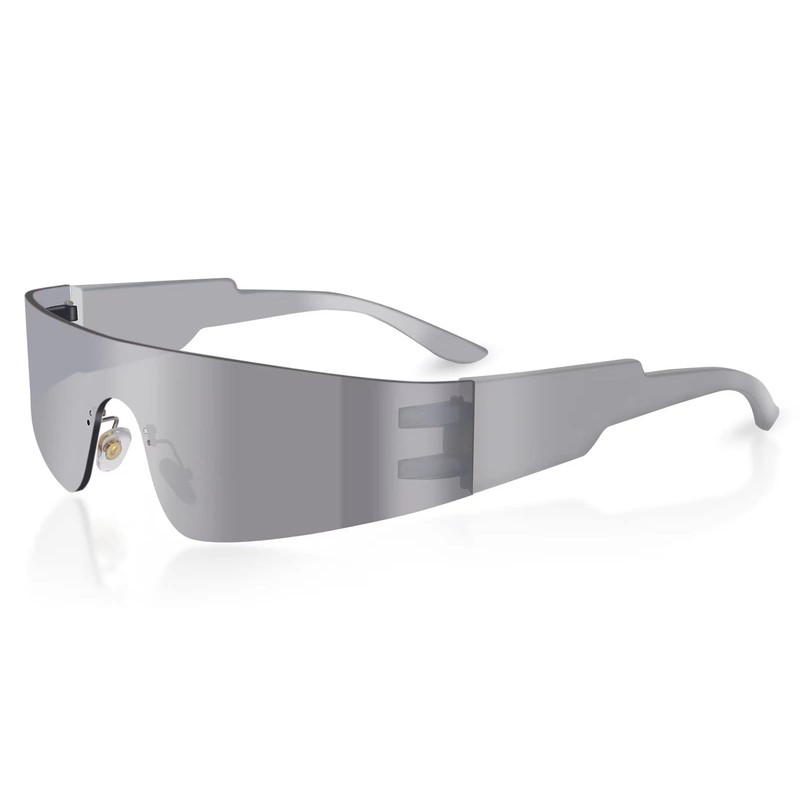 milramtob Futuristic Wrap Around Sunglasses Y2K Silver Trendy Rimless Glasses Cyberpunk Eyewear for Women Men Rave Party