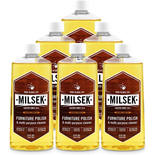 Milsek Furniture Polish and Cleaner with Lemon Oil, 12-Ounce, Pack of 6, LM-6