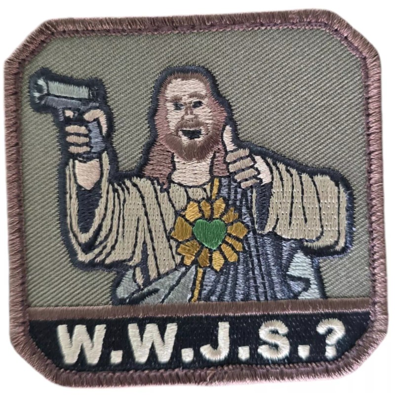 MILSPEC MONKEY MSM W.W.J.S.? JESUS CHRIST MILSPEC MONKEY MILITARY TACTICAL FOREST HOOK PATCH
