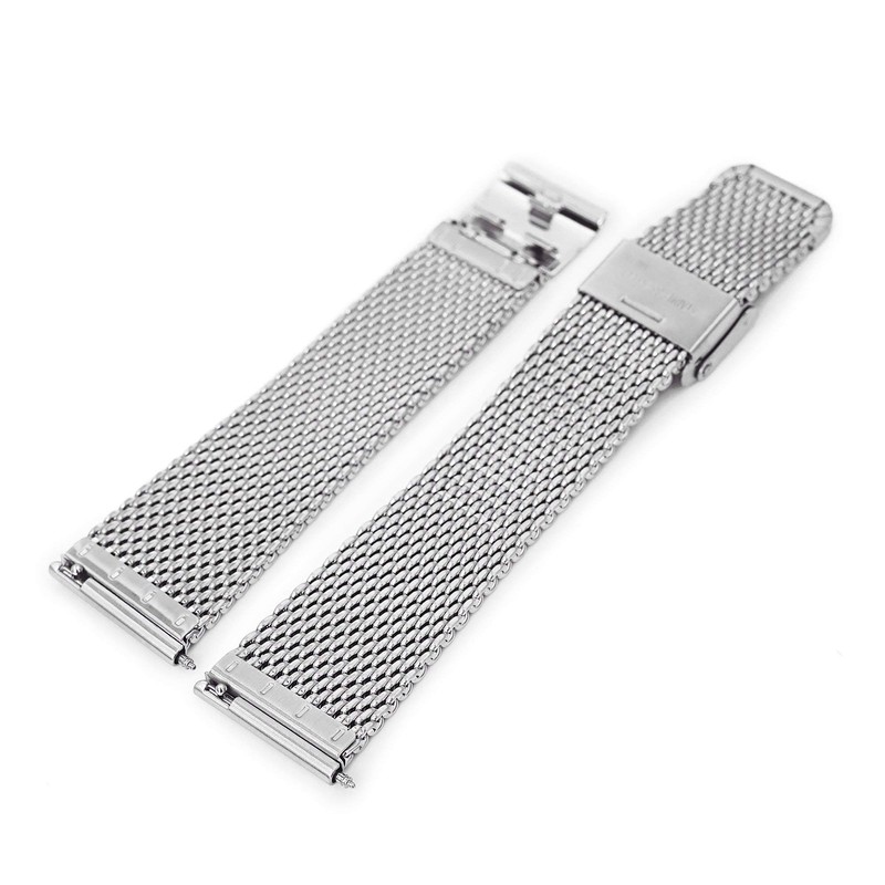 MiLTAT 19 mm Quick Release Tapered Milanese Mesh Watch Strap Brushed, silver,...