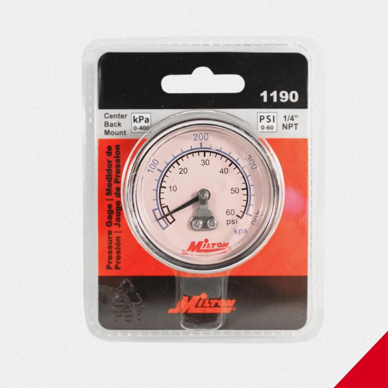 Milton Mini Pressure Dial Gauge, Brass, 1/4" NPT (1190)
