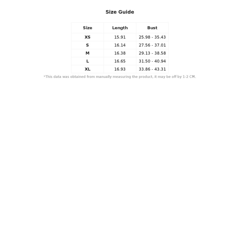 XS:Bust:26.0-35.4IN,Length:15.9IN