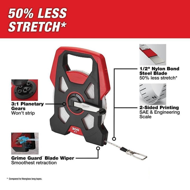 Milwaokee Fits for Milwaukee 48-22-5230 300 ft. Open Reel Long Tape Measure, 3/8"" Nylon Steel Blade, Red