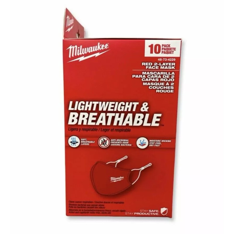 Milwaukee 10 PACK RED Milwaukee 2-Layer Performance Face Mask —One Size 48-73-4229