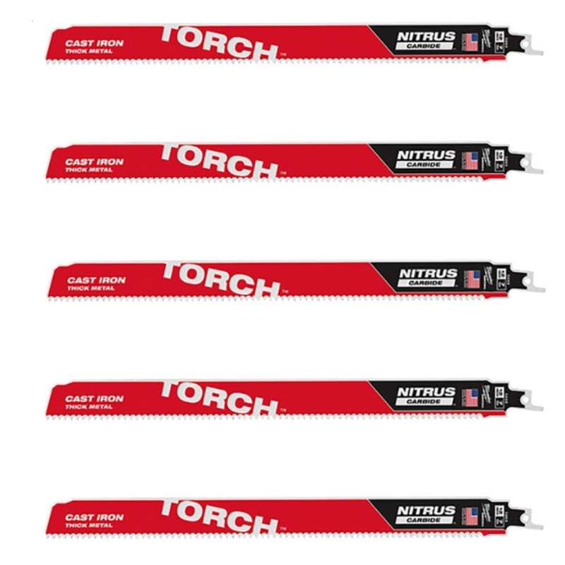 Milwaukee Elec Tools 48-00-5563 Reciprocating Saw Blade for Cast Iron/ Thick Metals, 12" 7 TPI The TORCH, 5-Pack