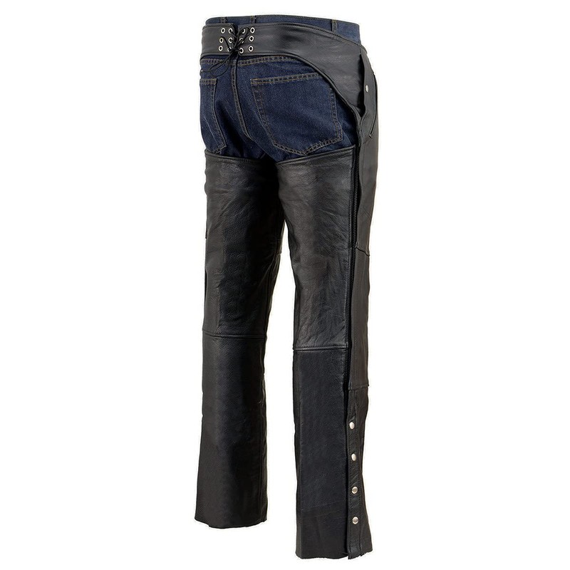 Milwaukee Leather Chaps for Men's Black Leather 4-Pockets - Snap Out Thermal Lined Motorcycle Riders Chap - SH1191C - Large