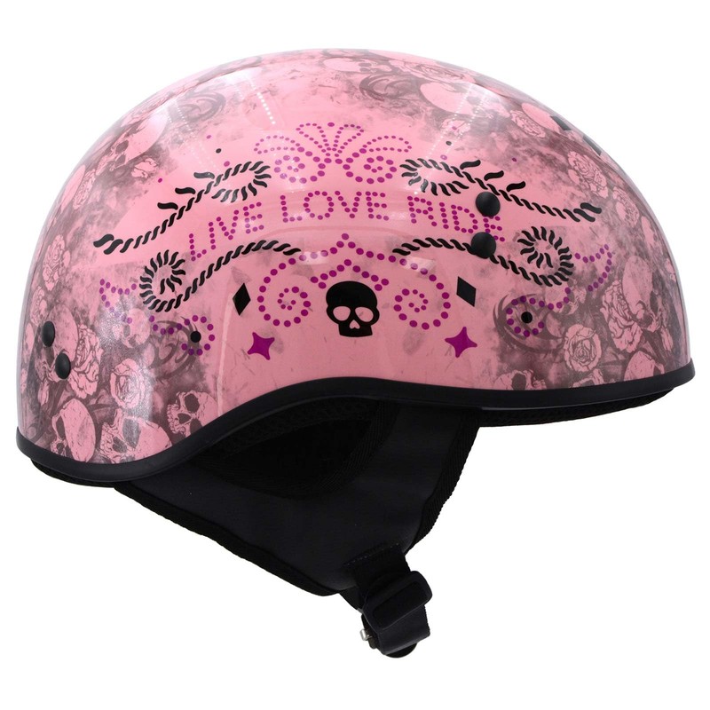 Milwaukee Leather Hot Leathers HLD1048 'Live, Love Ride' Gloss Pink Motorcycle DOT Approved Skull Cap Half Biker Helmet - Large