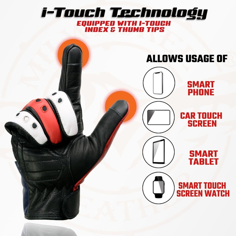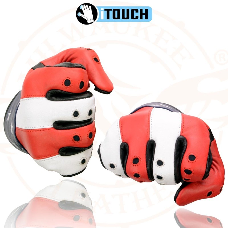 Milwaukee Leather MG7527 Men's Black Leather i-Touch Screen Compatible Motorcycle Hand Gloves w/Stars and Stripes - Large