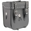 Features Made of Strong Durable PVC Material Chrome Studded with Concho Details Easy On-The-Go Carrying Top Handle Universal Mounting Adjustable Back Straps Quick Release Double Front Straps D Rings with Tie Down Straps Dimensions 14-inch-Height x 15-inch-Wide x 7.5-inch-Deep Model # SH581 Safety Warning
