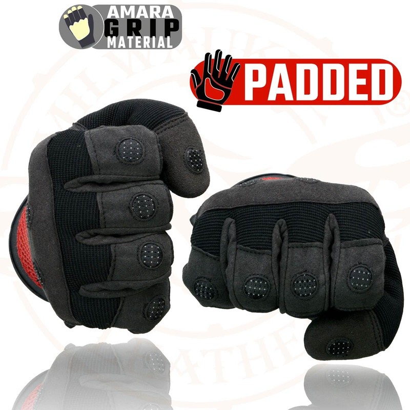 Milwaukee Leather SH76102 Men's Black and Red Textile Mesh Motorcycle Mechanics Hand Gloves W/Amara Cloth Bottom - X-Large