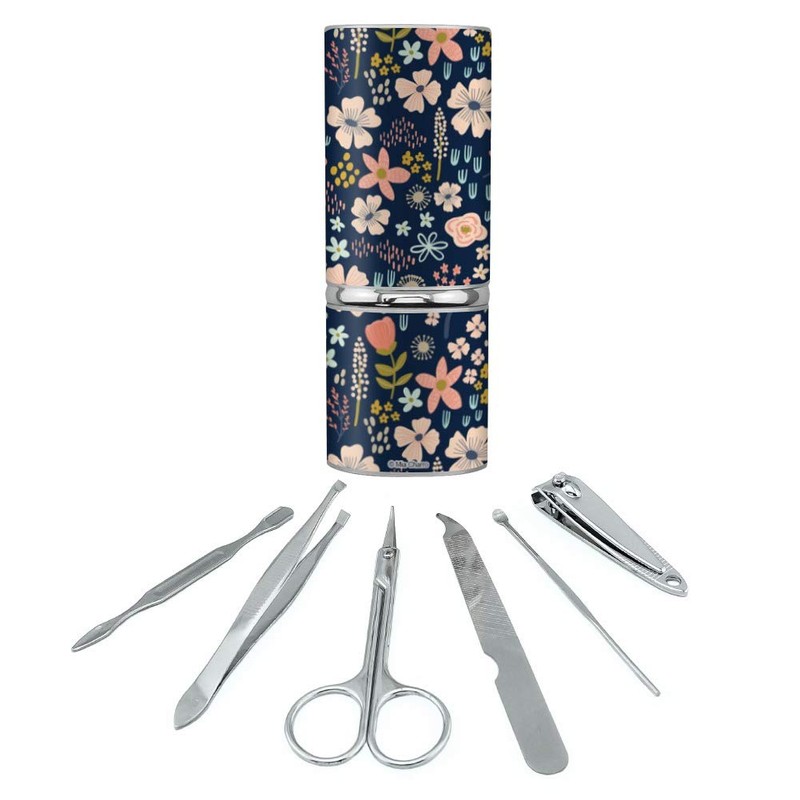 Mimi Flowers Floral Pattern Stainless Steel Manicure Pedicure Grooming Beauty Care Travel Kit