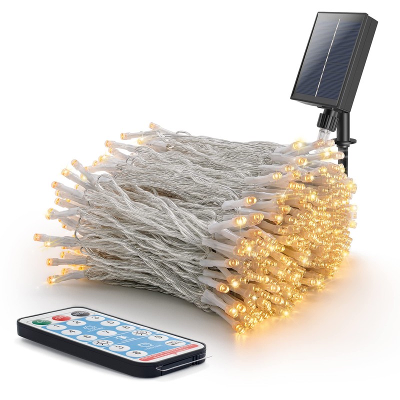 mimigogo Solar String Lights Outdoor,500 LED 165FT Christmas Lights with 8 Modes and Timer, Remote Control for Holiday Patio Garden Party Decor(Warm White)