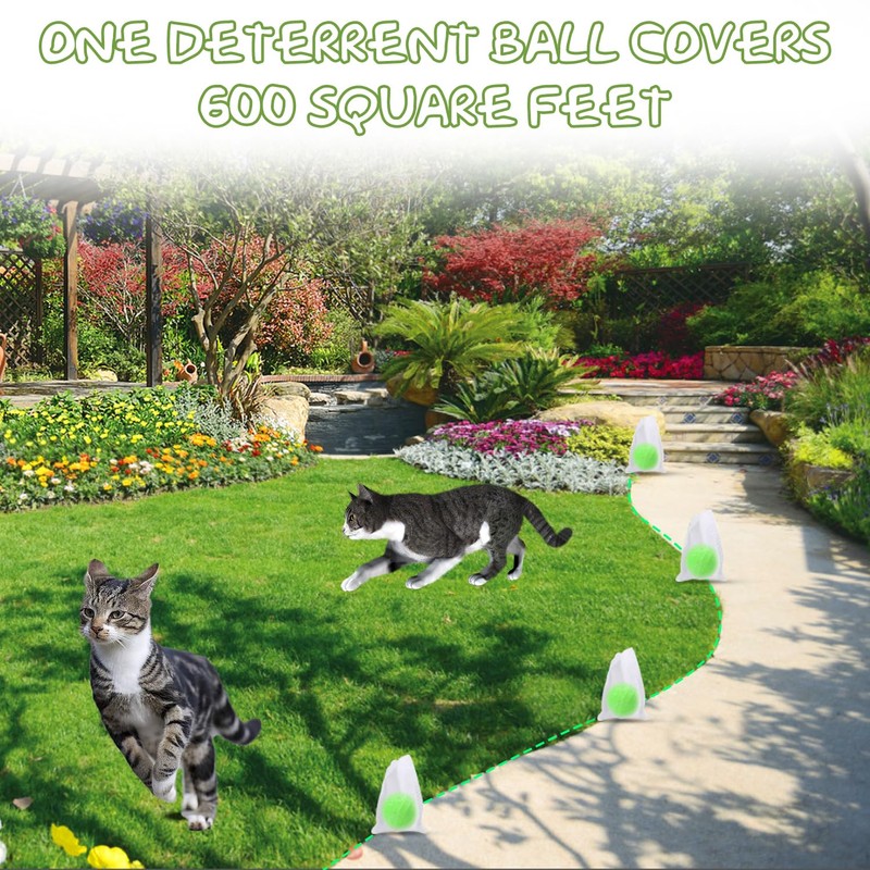 - Long-lasting & Effective Action: Our concentrated cat deterrent uses a new formula to provide a long-lasting scent and the cat deterrent balls will continue to protect your yard for 6 months. Waterproof and Sun-protection, the fragrance continues even when irrigated and when it snows , protecting your yard all year round.