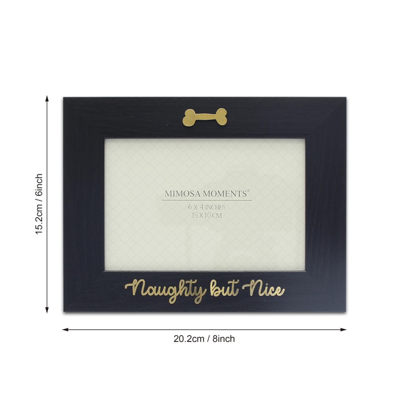 MIMOSA MOMENTS Black Picture Frame for Dog with Cute Bone Icon 4x6 photo (Naughty But Nice)