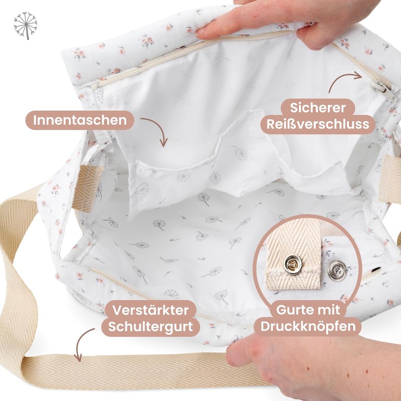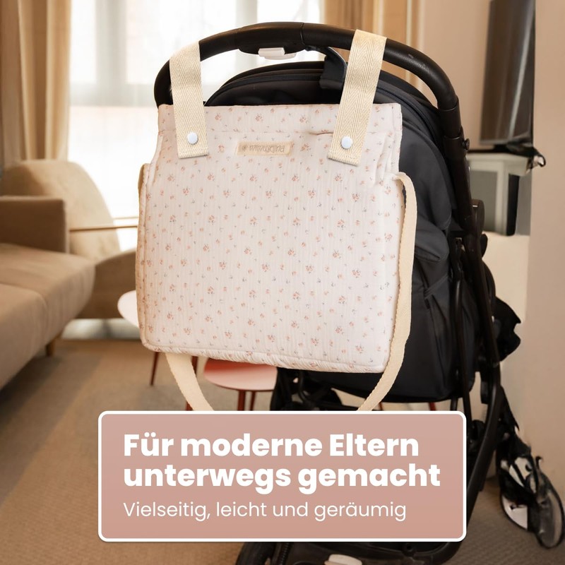 MIMUSELINA Lunch Bag for Pram, Practical and Functional Design, Zip and Adjustable Strap, Changing Bag for Walking Your Baby, Blossom