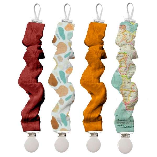 MIMUSELINA Pack of 4 Dummy Chains with Metal Clip for Babies, Dummy Strap for Hanging Dummies, Fabric Dummy Clip (Oasis)