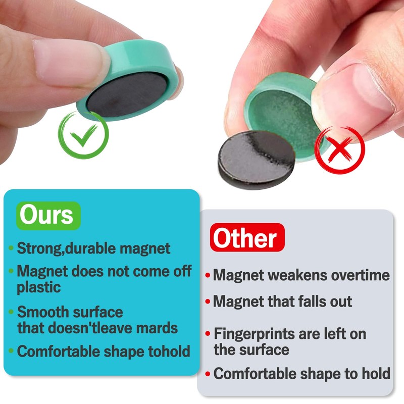 - 【Sturdy and Durable】The surface of the round magnet is PP material, with smooth edges and easy to pick up; smooth and compact, comfortable to hold without hurting your hands. There is a snap-on design between the small magnet and the shell, which is not easy to fall off