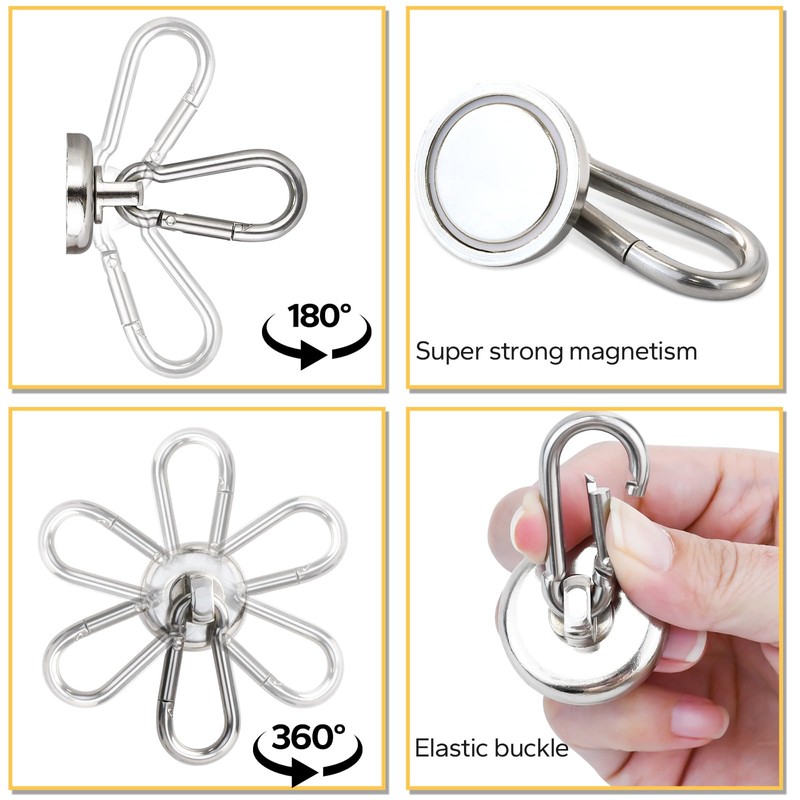 - 【Flexible use】The strong magnet can rotate 360° and swing 180°. The magnetic hook has a smooth bottom and can be moved and reused. It does not require drilling for installation, making it very flexible and convenient to use.