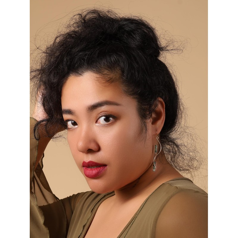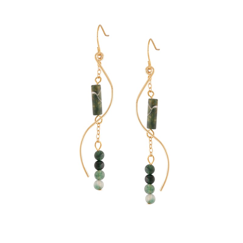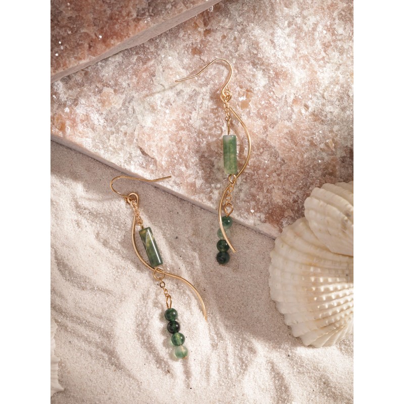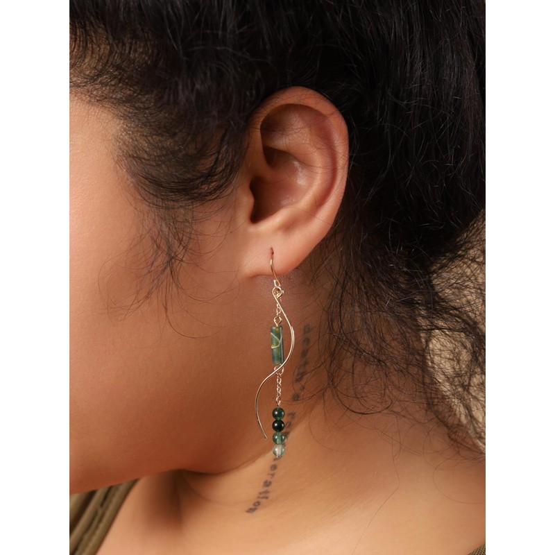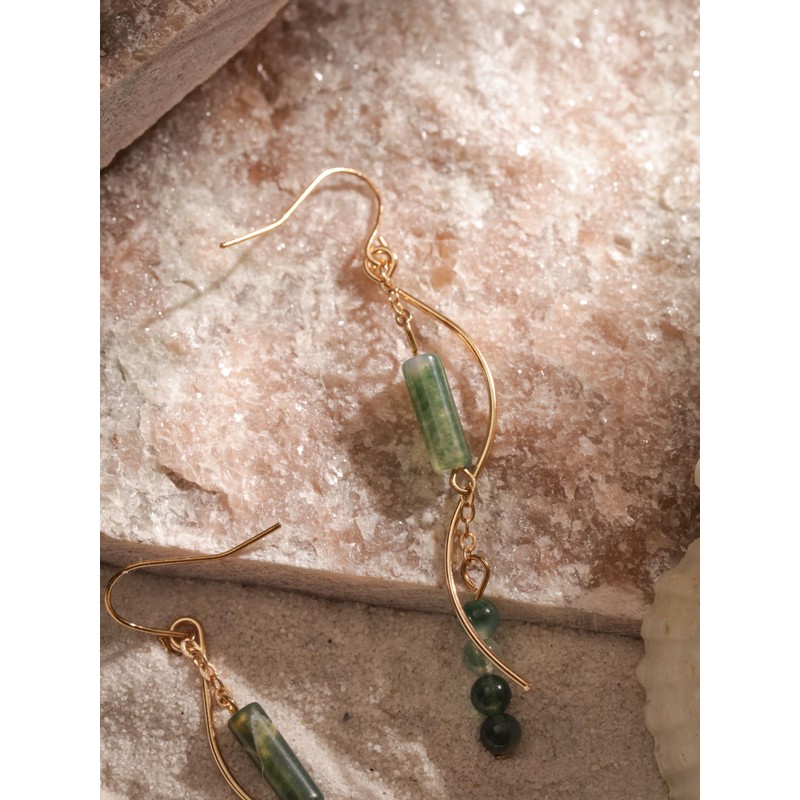 MINACHI Boho Wavy Gold-Tone and Green Stone Drop Earrings, Handmade Hippie Dangles For Women