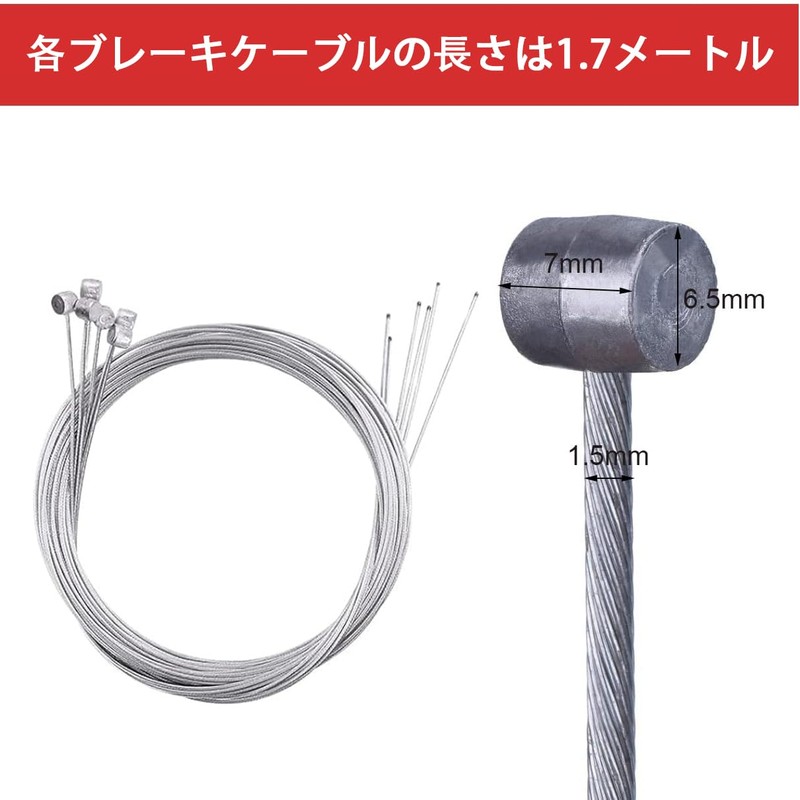 MINBOOT Bicycle Brake Inner Cable, Set of 6, End Caps with 10 Pieces, Bicycle Replacement Parts, Stainless Steel Brake Cable, Length 5.7 ft (1.7 m)