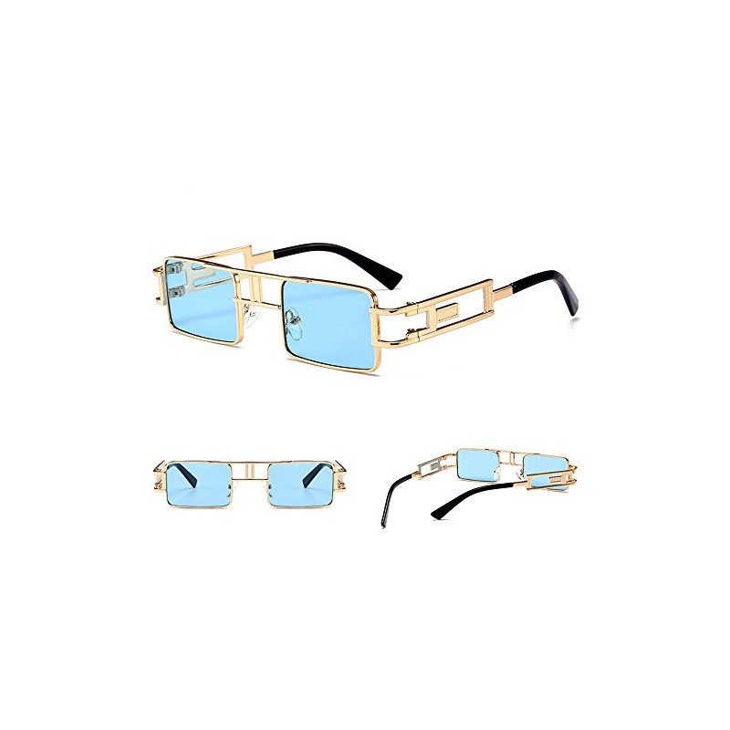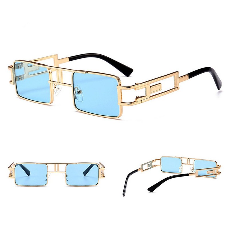 mincl/Hip-Hop Square Metal Small Frame Clear Color Lens Sunglasses (gold-blue)
