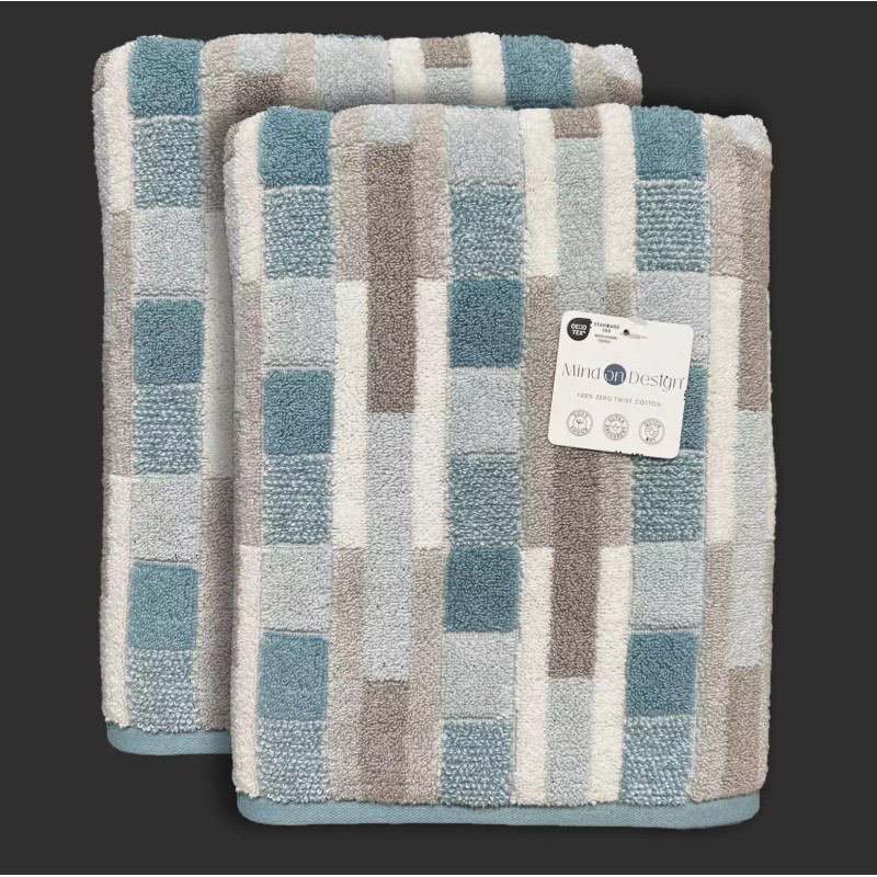 Mind On Design 2PC MIND ON DESIGN Soft Quick Dry Absorbent Bath Towel Turq Blue Gray Tiles