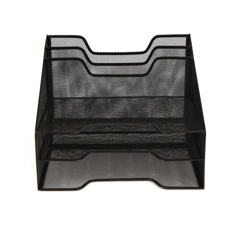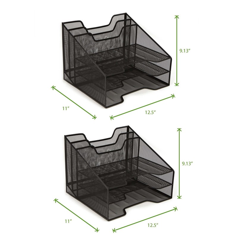 - FRONT LOADING PAPER TRAY - Equipped with 3 front loading storage trays for your immediate needs. Organize your important and most desired files in this section.TOP LOADING FILE TRAY - 2 top loading desk organizer trays for documents, paper, legal letters, A4 paper, binders, magazines, and more..NO ASSEMBLY REQUIRED - Ready to use right out of the box. No tools or hardware needed. Enjoy your desk tray as soon as you receive it.EASY TO MAINTAIN - Metal mesh construction allows you to easily clean and maintain this desk organizer. Simply wipe down with a Clorox / Lysol wipe. A wet paper towel or dusting can will do the trick as well.LARGE CAPACITY - Store an enormous amount desk accessories and supplies with our desk organizing paper letter tray. Comes in handy for the individuals who love organization.DIMENSIONS: 11 (L) x 12. 5 (W) x 9. 13 (H)