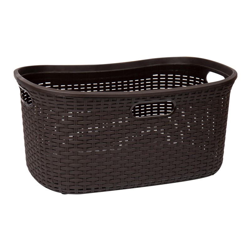 Mind Reader 40L Laundry Basket, Clothes Hamper, Wicker Design, Plastic, 23"L x 14.5"W x 11"H, Brown