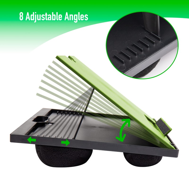 Mind Reader Adjustable 8 Position Top Desk with Cushions, Monitor, Laptop Lap Holder, Green, Single, 11.12 D x 14. 75 W x 3 H