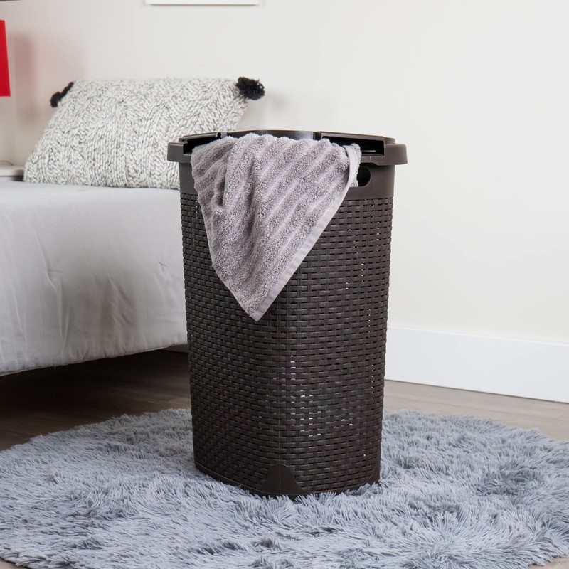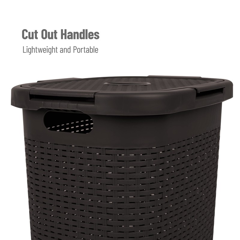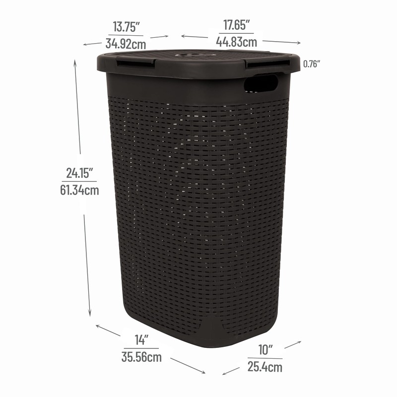 "Keep your dirty laundry out of sight and out of mind! The MIND READER Slim Laundry Hamper let’s you throw as many clothes into it as you need in a slim and space-saving form factor! Whether your clothes are dirty or clean, this hamper for laundry comes with a lid that easily stores as much as 60 liters of clothing. It also conveniently comes with built-in handles on both sides! We’ve cut into the sides of the basket frame to allow for a secure and comfortable grip the next time you bring your wicker hamper with a lid to the laundry. MIND READER storage is also made with the very best in high-quality plastic, making it different from mesh laundry bags and other hampers that are made with cheap materials and tear easily. We’ve also designed it with interlocking wicker that lets air flow freely through your hamper, improving ventilation and preventing any kind of odor build-up that tends to happen with traditional cotton rope baskets. It can be used for all types of organization and storage! It’s slim but deep enough to cleverly keep all your clothes or items in one space with its slim and sleek form factor. It takes up very little space in your room and is perfect for any minimalist home, apartment, or dorm room. Carrying it around is also super easy! This hamper comes in at just over 3 pounds in weight, making it light without compromising build quality. If you’re looking for a place to put all your laundry without taking up too much space, you’ve found it in the MIND READER Slim Laundry Hamper. Buy now! "
