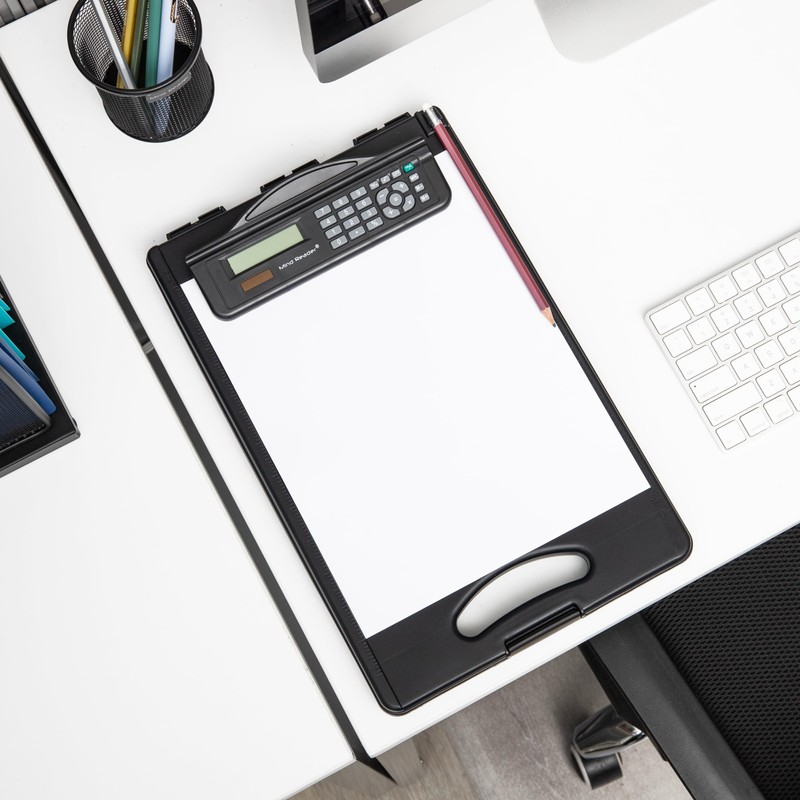 - Built-In Calculator & Clip: Includes a built-in calculator that also serves as a secure clip for your documents