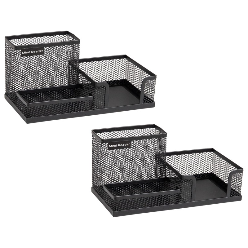Mind Reader Network Collection Desk Organizer with 3 Compartments, Pen and Accessory Holder, Memo Holder and Paper Clip Basket, Desk Organiser, Metal Grid, 20.5 cm L x 10.5 cm W x 10 cm H