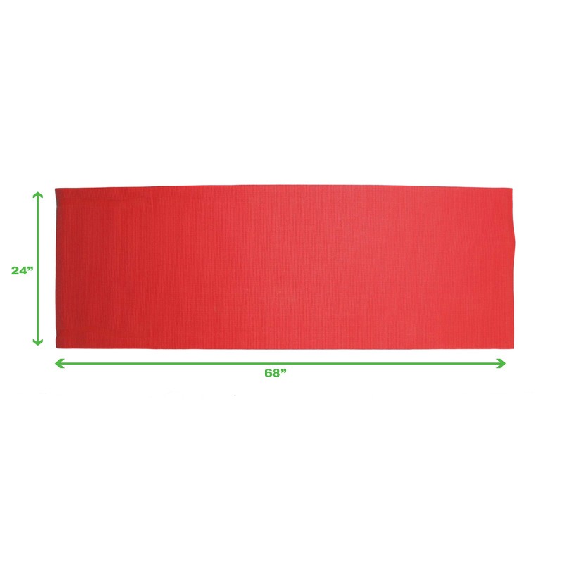 1/4” Thick All-Purpose Mat With high density foam material, the 1/4” premium mat comfortably cushions spine, hips, knees, and elbows on hard floor. Thicker than most other PVC mats on the market, The Mind Reader Yoga Mat will serve its purpose and provide maximum comfort and cushion for your workout routine. An Anti-Tear Yoga Exercise Mat With integrated anti-tearing net and high quality material, you may use this mat for all types of yoga poses and exercise routines without the worry of damaging the cushioned floor mat. Made with attention to details so that you can focus on your workout routine and get that body into tip-top shape. Extremely Easy To Clean The All-Purpose Mind Reader Exercise Mat is super easy to clean and maintain. The moisture resistant technology and superior quality material make the mat easy to wash with mild soap and water. Can be wiped down wipes like Lysol / Clorox or any other type of disinfectant wipe Carrying Handle Included Equipped with a carrying strap for your convenience. Easily bring your yoga exercise mat to the gym, pilates class, the park, or your friends house for a friendly workout session. When yoga mat is not in use, you can conveniently roll up the mat and store it in a utility closet for easy storing. Specifications Color: Red Material: PVC Assembly Required? No assembly is required. Dimensions: 68” L x 24” W x 0. 3” H