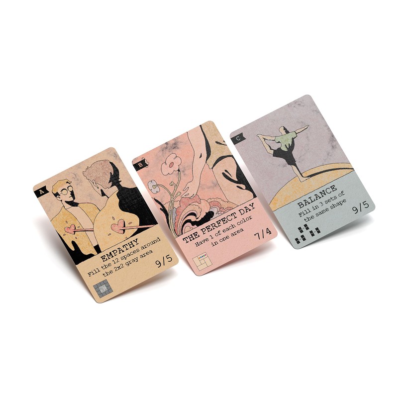 Breath in…Breath out… Achieve serenity! Mind Space is a thoughtful game in which players are trying to seek calm and peacefulness by adding pursuits to their brains. Each pursuit is represented by a polyomino shape of a certain color.