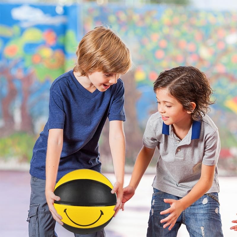 MINDCOLLISION 5/6/7 Smile Basketball, Women's PU Soft Leather Basketball, Good Dribbling and Shooting Feel, Birthday Gift, Suitable for Indoor and Outdoor Use. (8 Colors),Black + Yellow,No.6