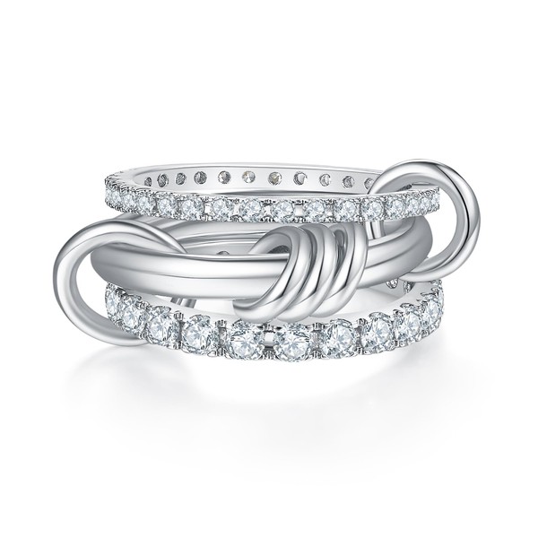 MINDDHA 14K White Gold Plated Interlocked Stackable Rings for Women - Stateme...