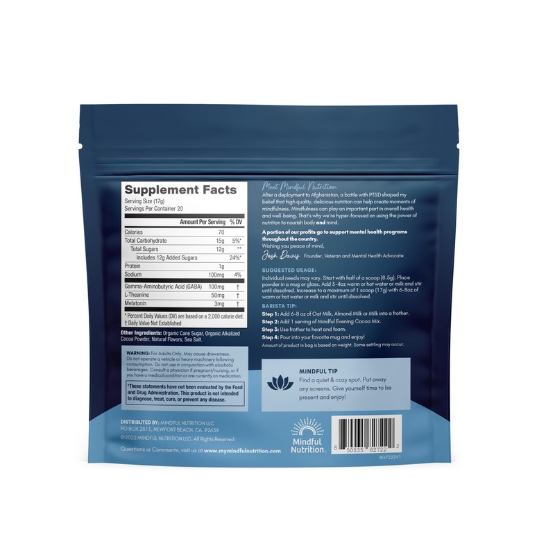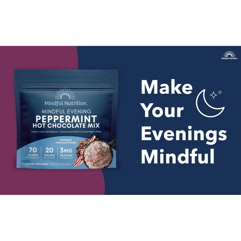 Mindful Evening Peppermint Cocoa Mix Natural Sleep Aid, Melatonin 3mg, L-Theanine, GABA Supplements, Natural Calm Sleep Support Stress Relief Calm Sleepy Cocoa Nighttime Peppermint Hot Chocolate