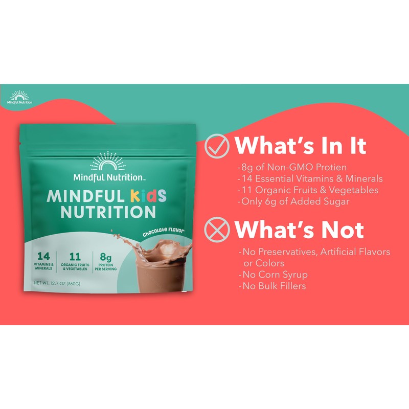 Mindful Nutrition Mindful Nutrition Kids Protein Powder Shake Mix, Organic Fruit and Vegetable Green Superfoods, Vitamins, Minerals, Healthy Chocolate Milk Snack for Toddlers, Kids, Teens and Adults 12.7oz