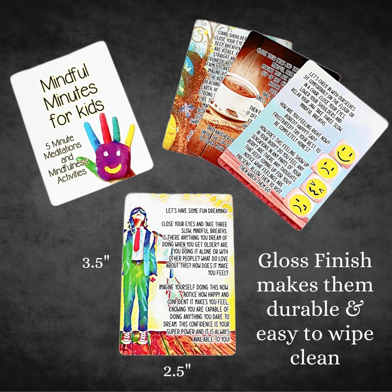 Do you sometimes feel your kids could use some positive reinforcement? Do they struggle with low self-esteem or anxiety? Are they easily frustrated or angry? Mindfulness and Meditation may be the answer. Help your children re-discover their joy and self-love with the Because I’m Happy Mindful Minutes Cards for Kids! Make every day an inspiring one with our Mindful Minutes cards. Ask your child to pick a card every morning and discuss the positive affirmation or gratitude statement together. Then take part in the corresponding mindfulness or meditation activity. It can be done in 1-5 minutes! Still not convinced? Here are additional reasons to make you love these affirmation cards: ✅ Fun for the whole family ✅ Easy tool for parents, caregivers, teachers, therapists and other mental health professionals ✅ Easily encourage a daily mindfulness and meditation practice ✅ Glossy, thick and sturdy ✅ Great conversation starters
