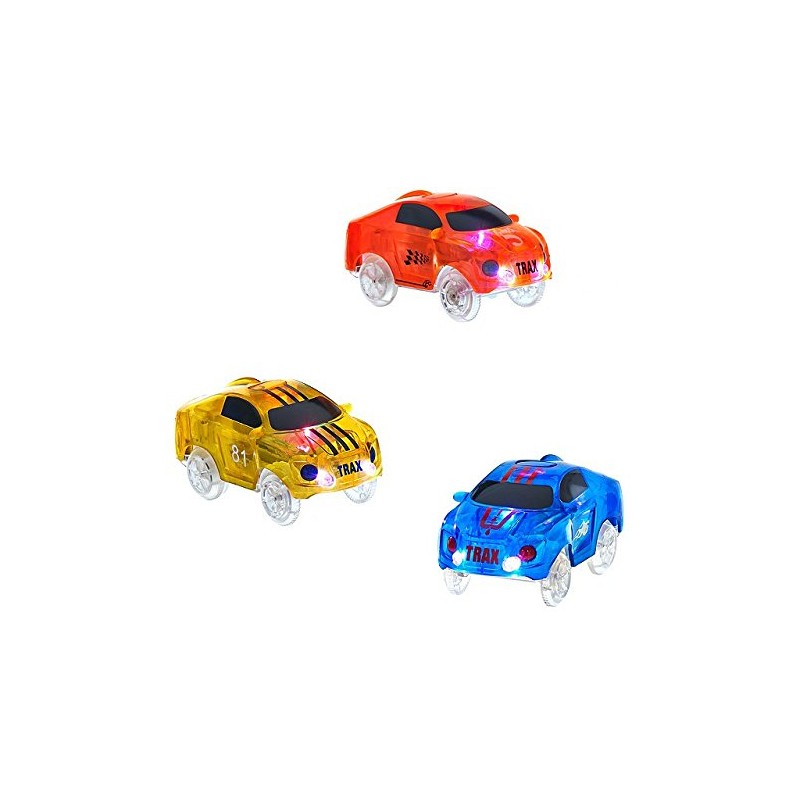 - Each vehicle features five LED lights including two multicolored headlights, two multicolored lights in the body, and one black light