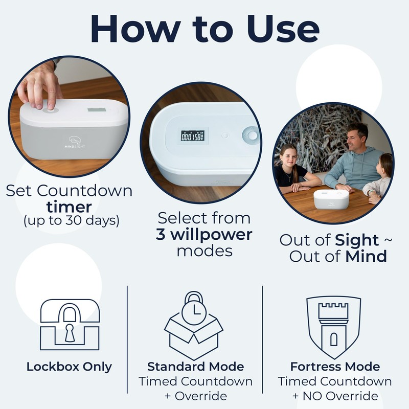 Mindsight Timed Lock Box | Unplug from Phones, Video Games, Social Media, Snacks & Cravings | 3 Modes based on Willpower | Easy to Use | Out of Sight ~ Out of Mind | Boost Your Mental Wellness