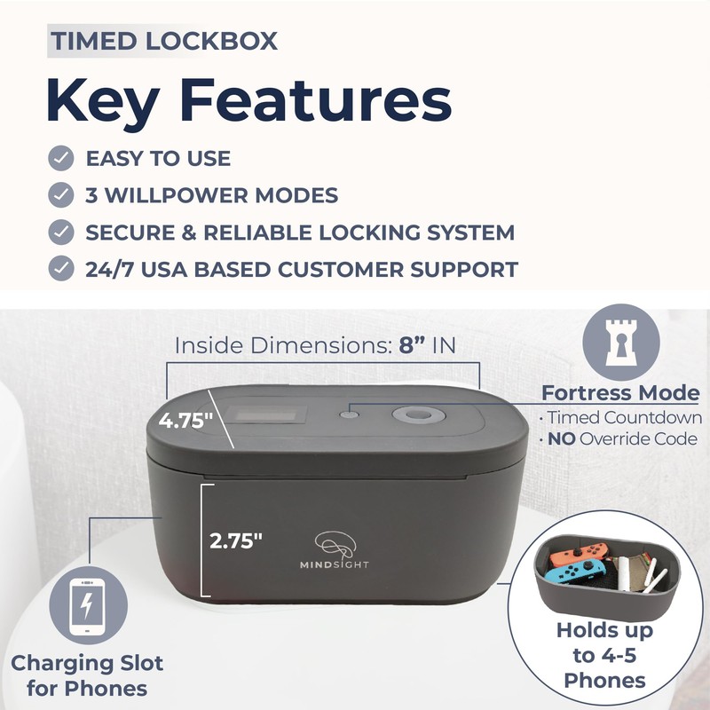 - 🔒 WHAT ITS FOR – Building better habits in today’s busy world. The Mindsight Timed Lockbox helps you disconnect from your phone and reconnect with friends & family. Use as a tool to build better screen habits, reduce consumption of snacks & cravings; build better willpower leading to a happier, healthier mind & bo