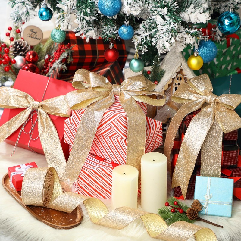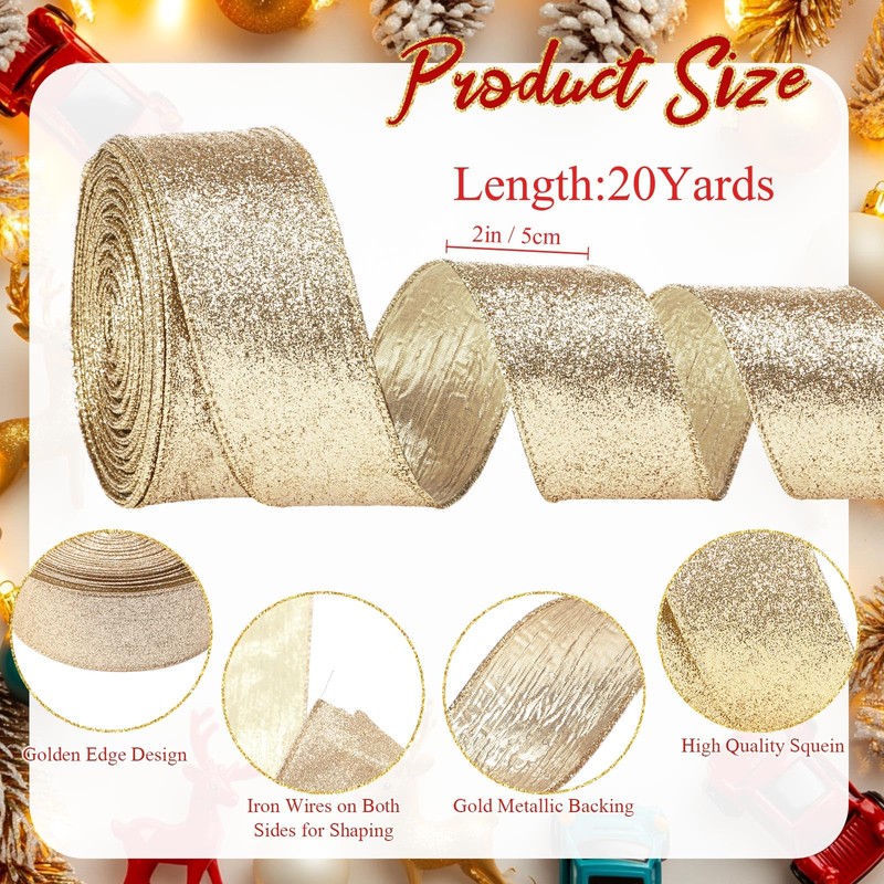 - DIY Delight: you can enjoy a delightful DIY experience with our champagne glitter ribbon; Its wired edges allow for easy manipulation, making it good for crafting bows, gift wrapping, Christmas tree decoration, Christmas garland making, gift baskets