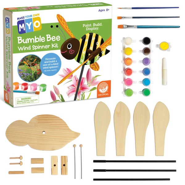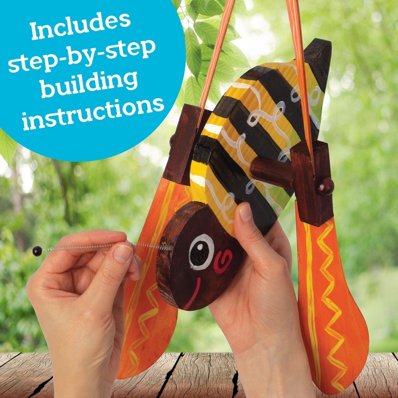 MindWare Make Your Own Bumble Bee Wind Spinner Wood Craft Kit - Build & Decorate for Ages 8 & Up