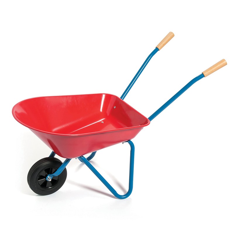 - Indoor or Outdoor Toy: Outside, kids can use this wheelbarrow to haul dirt, rocks or plants as they help with gardening tasks. You might also use this wheelbarrow to store kids gardening tools! Inside, this wheelbarrow makes a great tool for carrying toys from one room to another as they clean up after playtime.