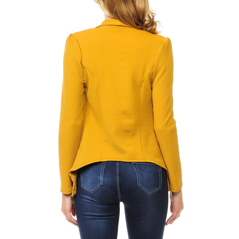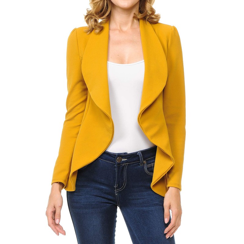 MINEFREE Women's Long Sleeve Classic Draped Open Front Lightweight Blazer Solid Mustard 1XL
