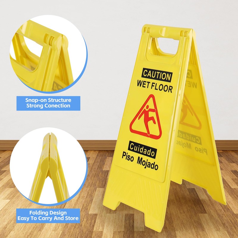 - Perfect for floors, doorways, walkways, hotel, school, cinema, swimming pool, public toilets, and shop -multiple signs are required for each wet floor entryway