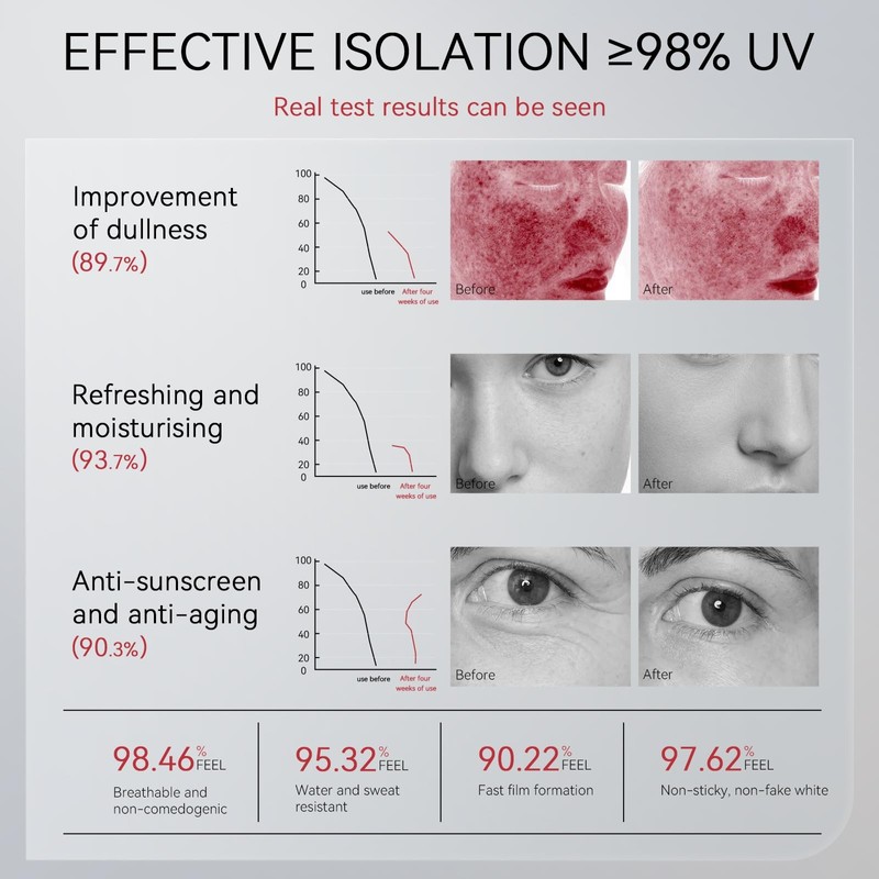 - 【Weightless, Breathable Coverage】 Experience invisible protection with this sunscreen spf 50 face that feels like a second skin—no heavy residue or pilling. The water-resistant yet breathable layer withstands sweat and humidity, perfect for outdoor activities. The face sun cream spf 50 fast-absorbing, matte finish ensures comfort all day, even under makeup